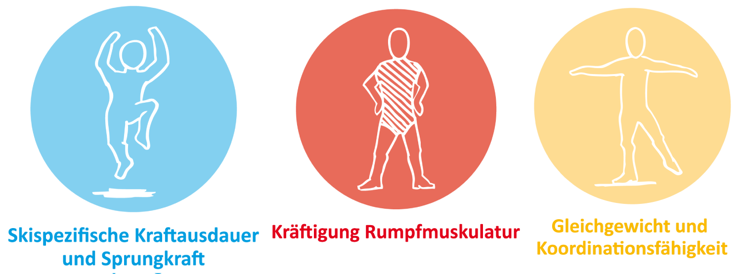 Ziel: Verbesserung der skispezifischen sportmotorischen Eigenschaften in folgenden Bereichen: