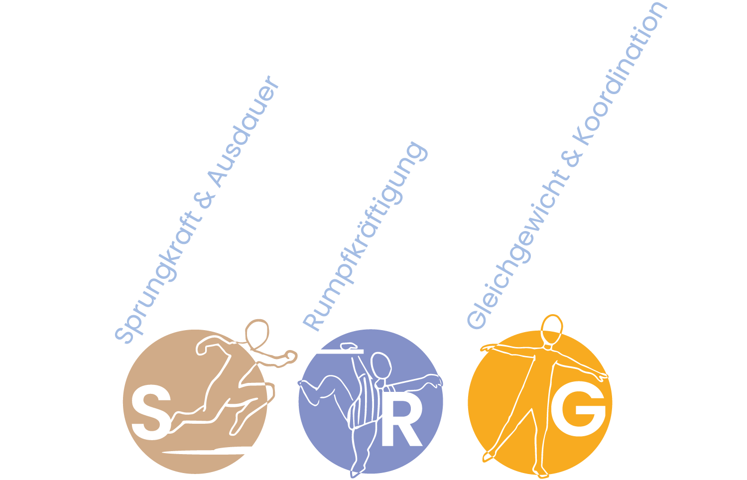 ist die Verbesserung der skispezifischen sportmotorischen Fähigkeiten (Sprungkraft & Kraftausdauer, Rumpfkräftigung, Gleichgewicht & Koordination) verpackt in vielen attraktiven Spielen und Übungsformen.