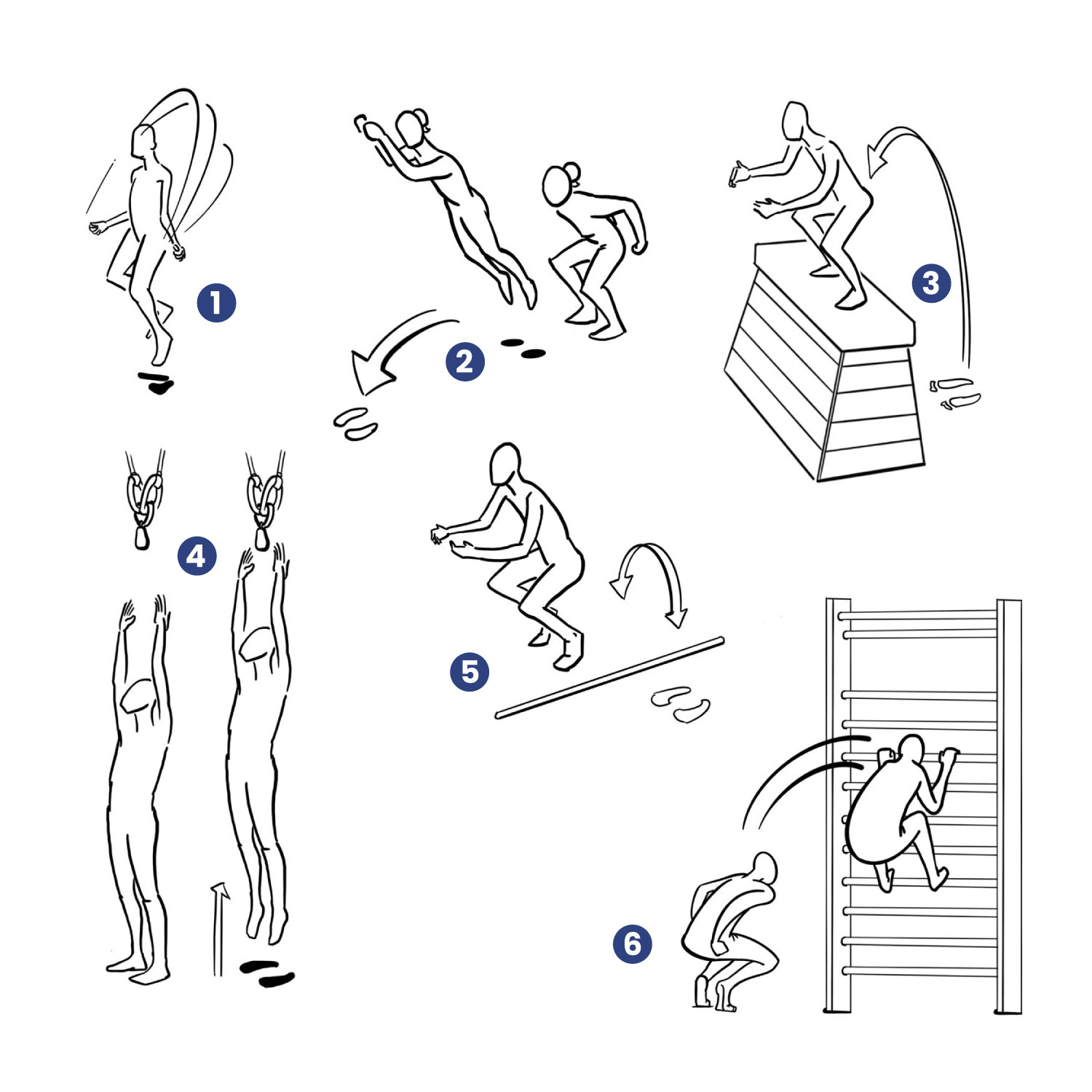 - Kastensprünge: Mehrfachsprünge und Maximalhöhe. „Wie hoch schaffe ich es?“