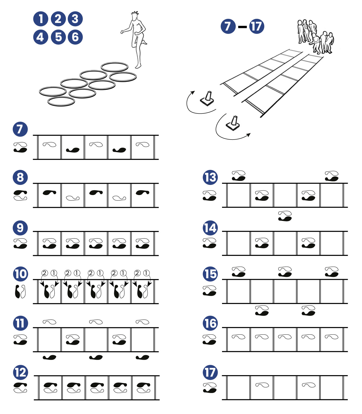 - Links, rechts und beidbeinig in unterschiedlichen Rhythmen wechseln