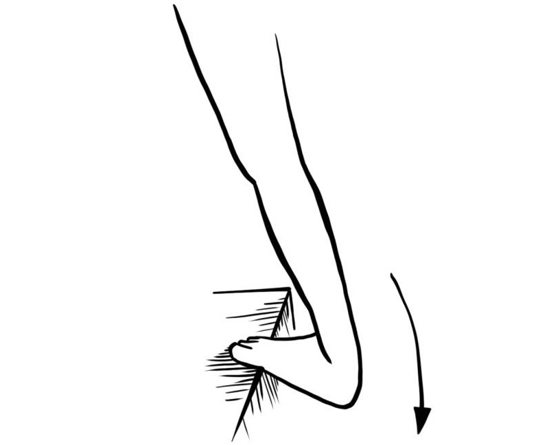 - Schulterbreiter Stand neben einer Wand oder einem Türstock. Eine Hand greift am Türstock in Schulterhöhe, der Arm bleibt gestreckt und die Schulter zieht vorsichtig (!) nach vorne. Beine in die Schrittstellung. Der Kopf dreht von der Wand weg. Keinesfalls ruckartige Bewegungen machen!