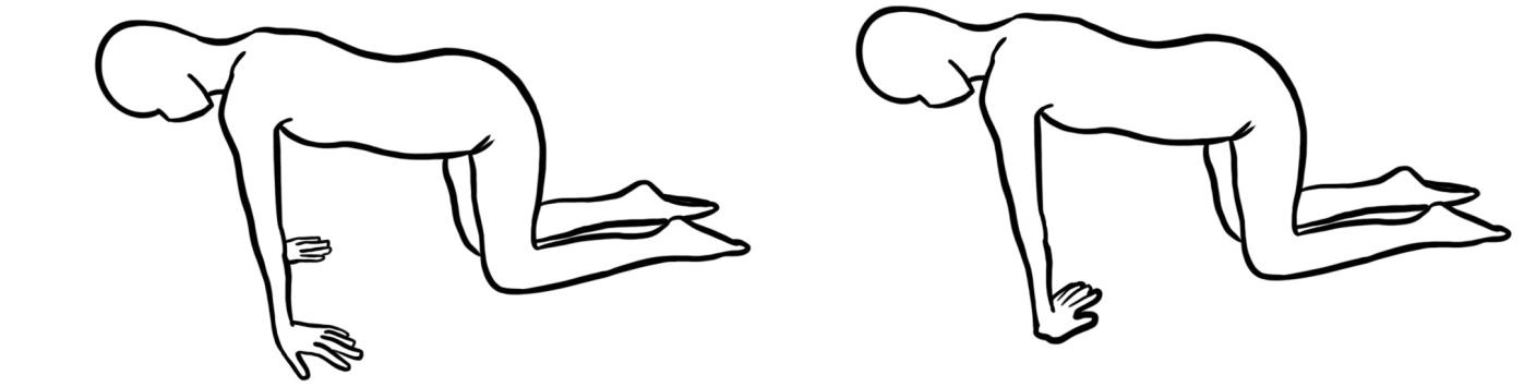 - Bankstellung am Boden, die Handflächen stützen am Boden, die Ellbogen sind gestreckt und Drehen der Handflächen nach außen.