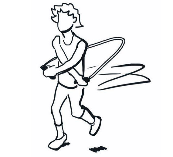 - Im Kniehebelauf laufen und das Seil unter jedem Bein durchschwingen