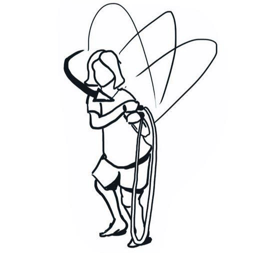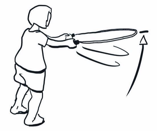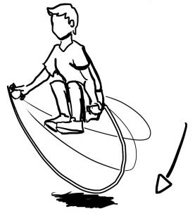 - Aus dem Rückwärtsspringen die Arme nach vorne strecken und die Seildrehung damit stoppen