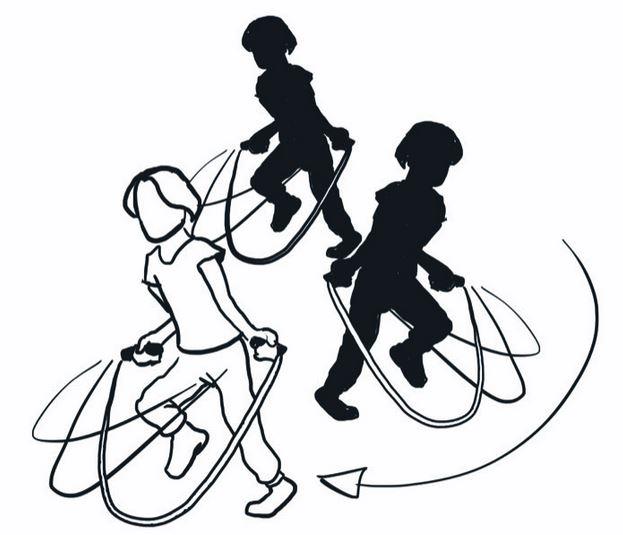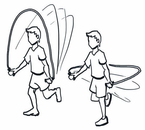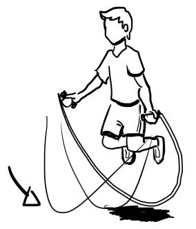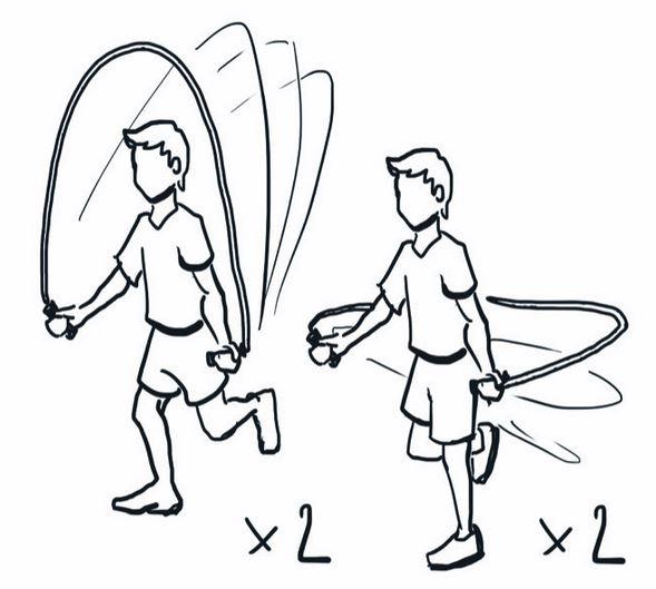 - Auf einem Bein abspringen, über das schwingende Seil springen und auf dem anderen Bein landen