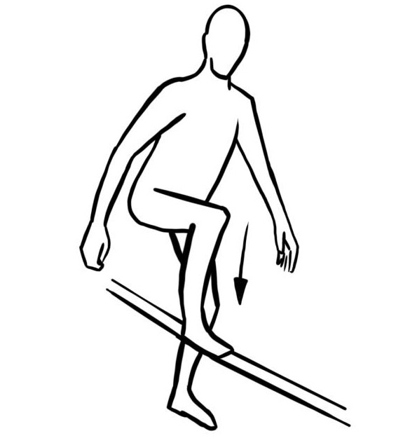 Du steigst mit einem Fuß auf die Slackline und drückst dich ab. Vom Gefühl her ist es ein nach unten Drücken des Fußes.