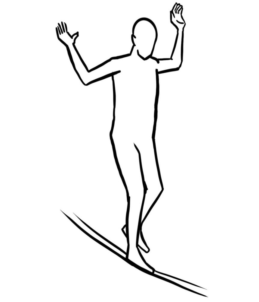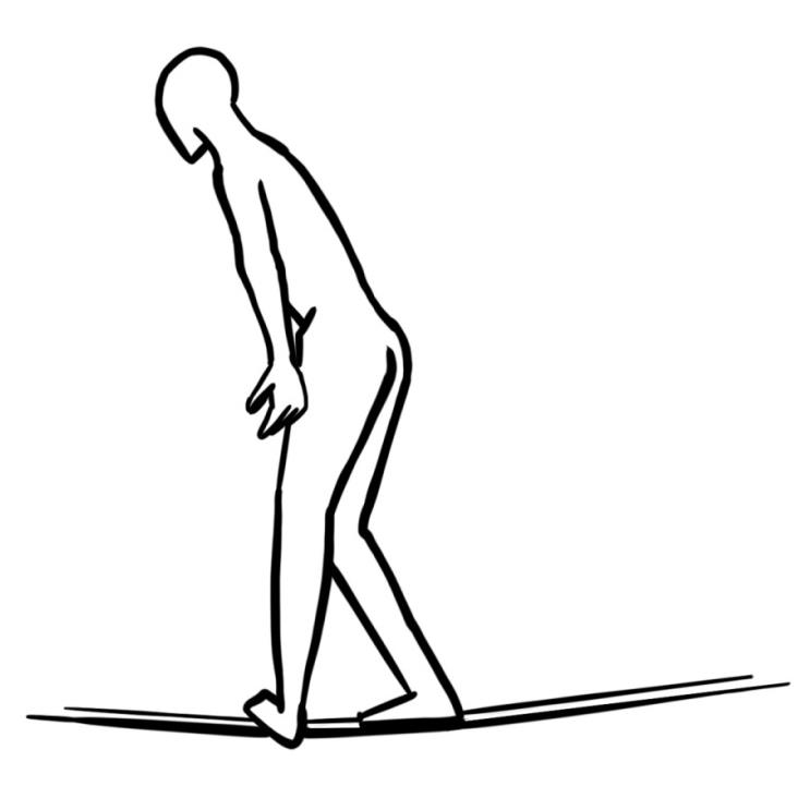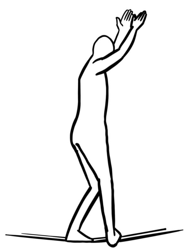 Eigentlich trifft der eher statische Begriff „Körperhaltung“ nicht den Kern des Slacklinens: Balancieren ist niemals statisch, sondern immer dynamisch, auch wenn es bei echten Könnern sehr ruhig und stabil aussieht!
