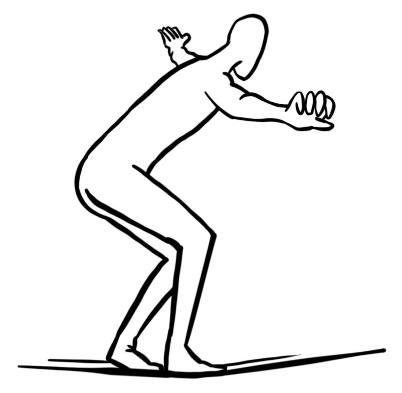 - Die Hüfte ist auch leicht gebeugt und bewegungsbereit.