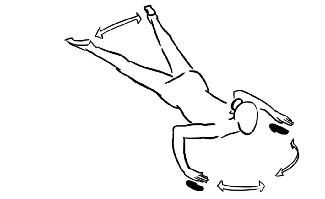 - Diagonales Anheben eines Armes und Beines aus dem Liegestützstellung