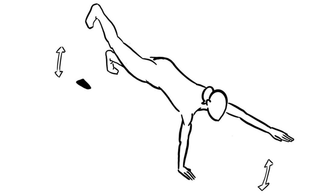 - Bauchlage mit gestreckten Armen und Beinen, anheben eines Armes gleichzeitig mit dem gegenüberliegenden Bein, Handflächen zeigen nach unten, Knie möglichst gestreckt halten
