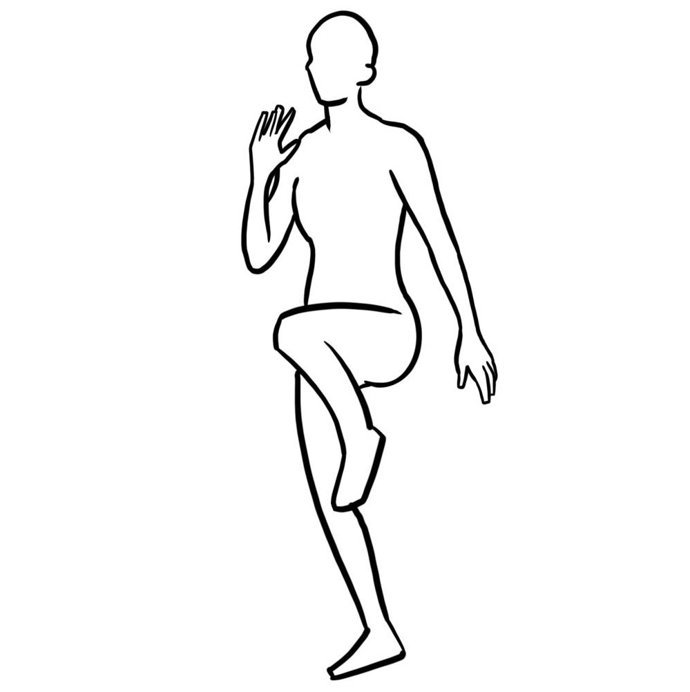 - Am Stand laufen und Oberschenkel bis in die Waagrechte anheben
