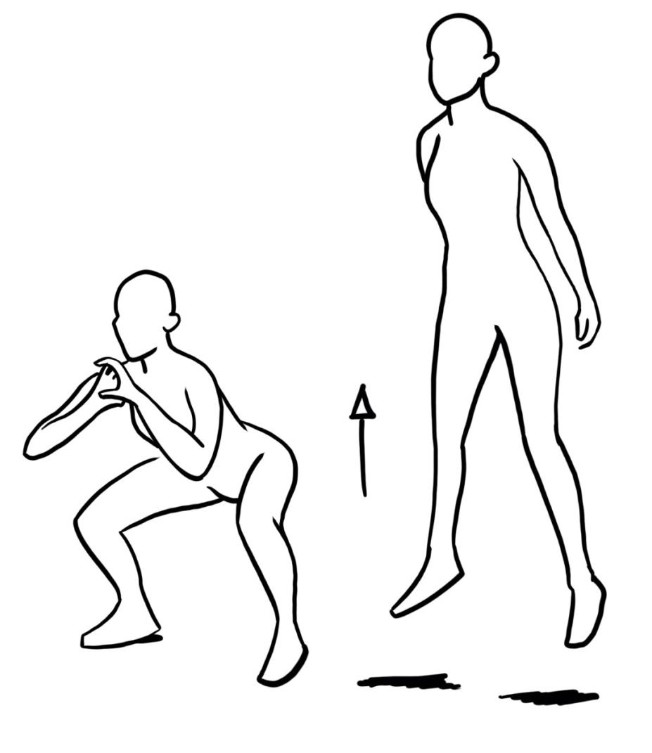 - Ausgangsposition: Hockstellung mit Armen vor dem Körper