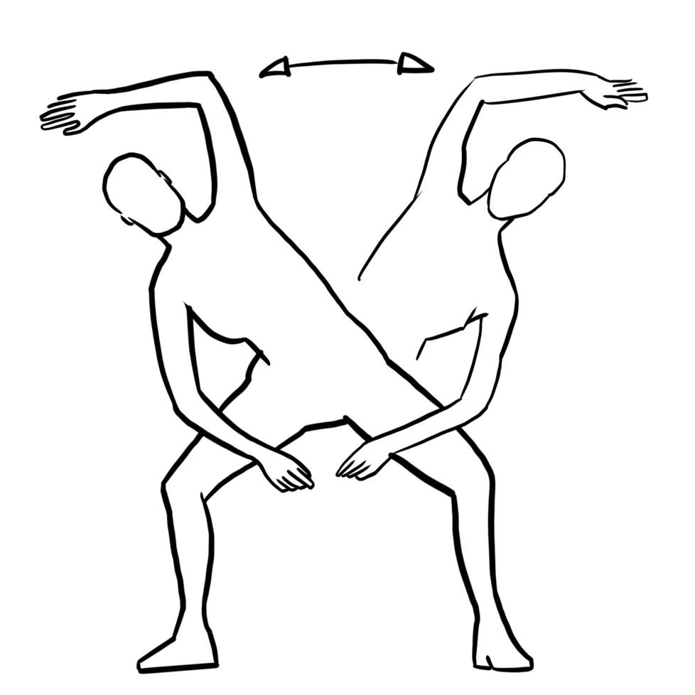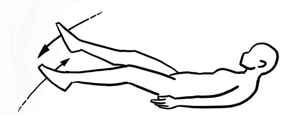 - Beine machen eine Scherbewegung bis zur Überkreuzung, wobei linkes und rechtes Bein ständig oben und unten wechseln
