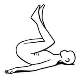 - Ausgangsposition: Rückenlage mit über den Kopf gestreckten Armen und ausgestreckten Beinen