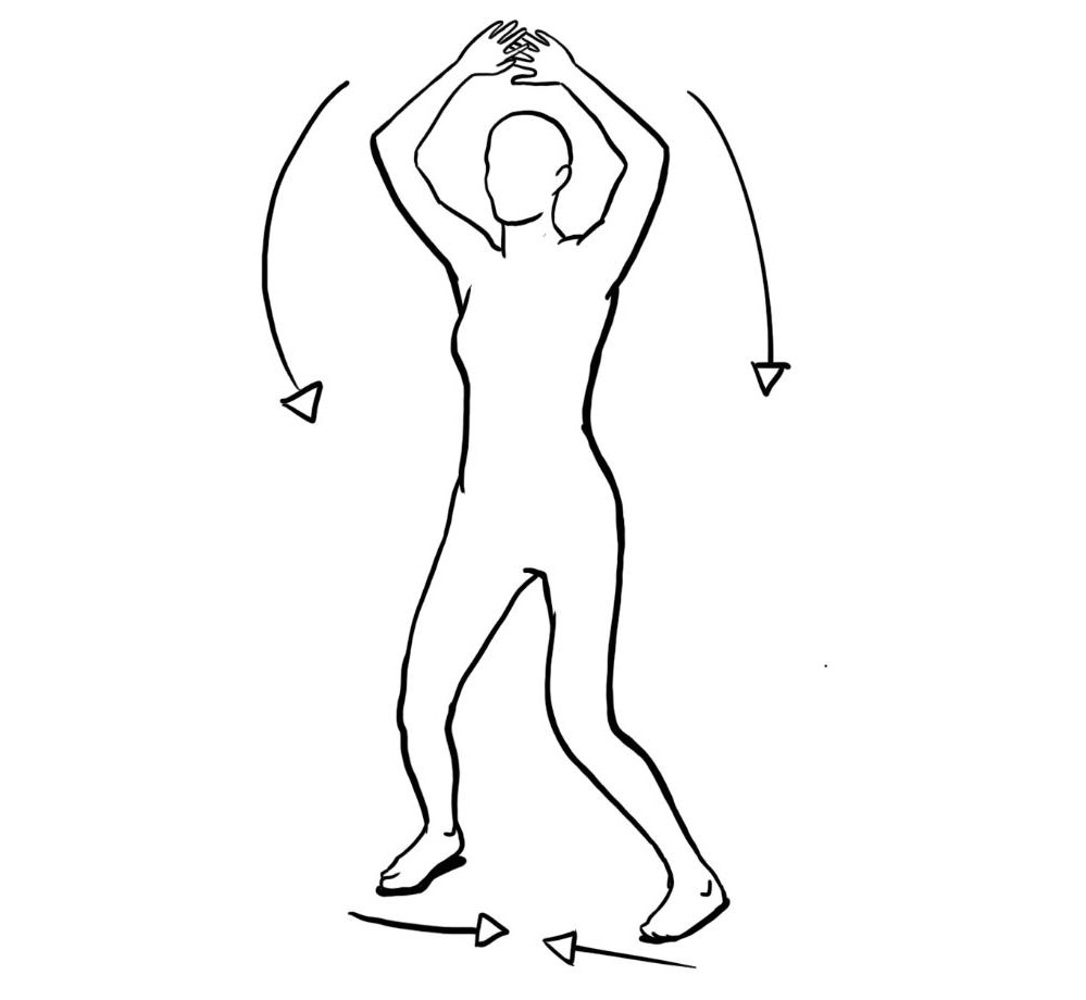 - gegengleiche Armbewegung: Armschluss über dem Kopf – Arme in der Waagrechten