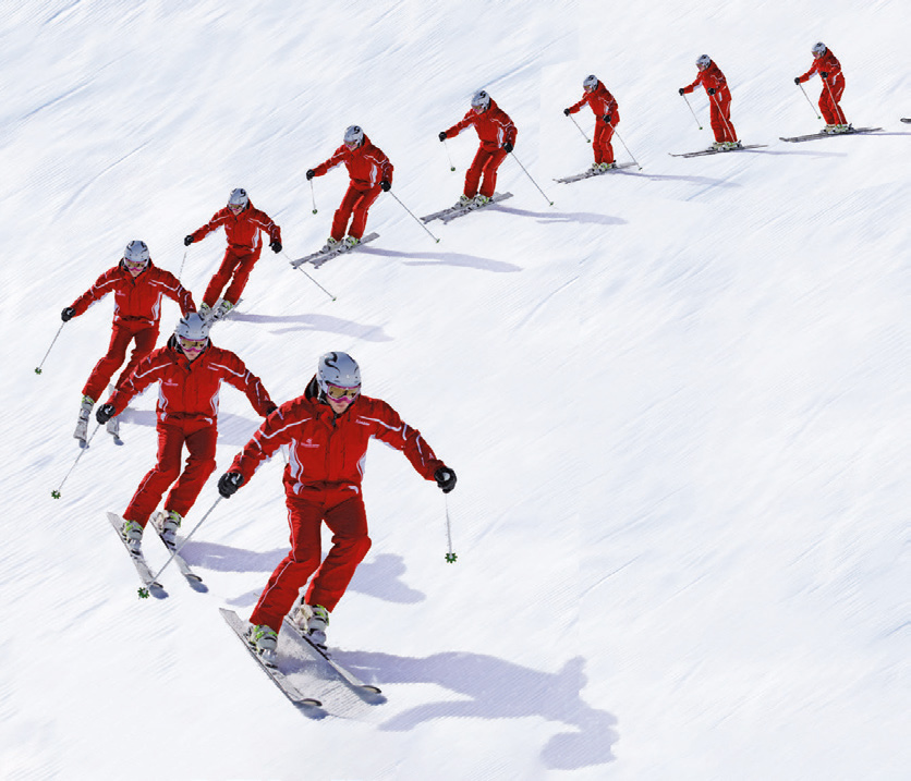 Die leicht offene Skistellung hilft beim Gleichgewichthalten und erleichtert das Umkanten, Drehen und Steuern der Skier.